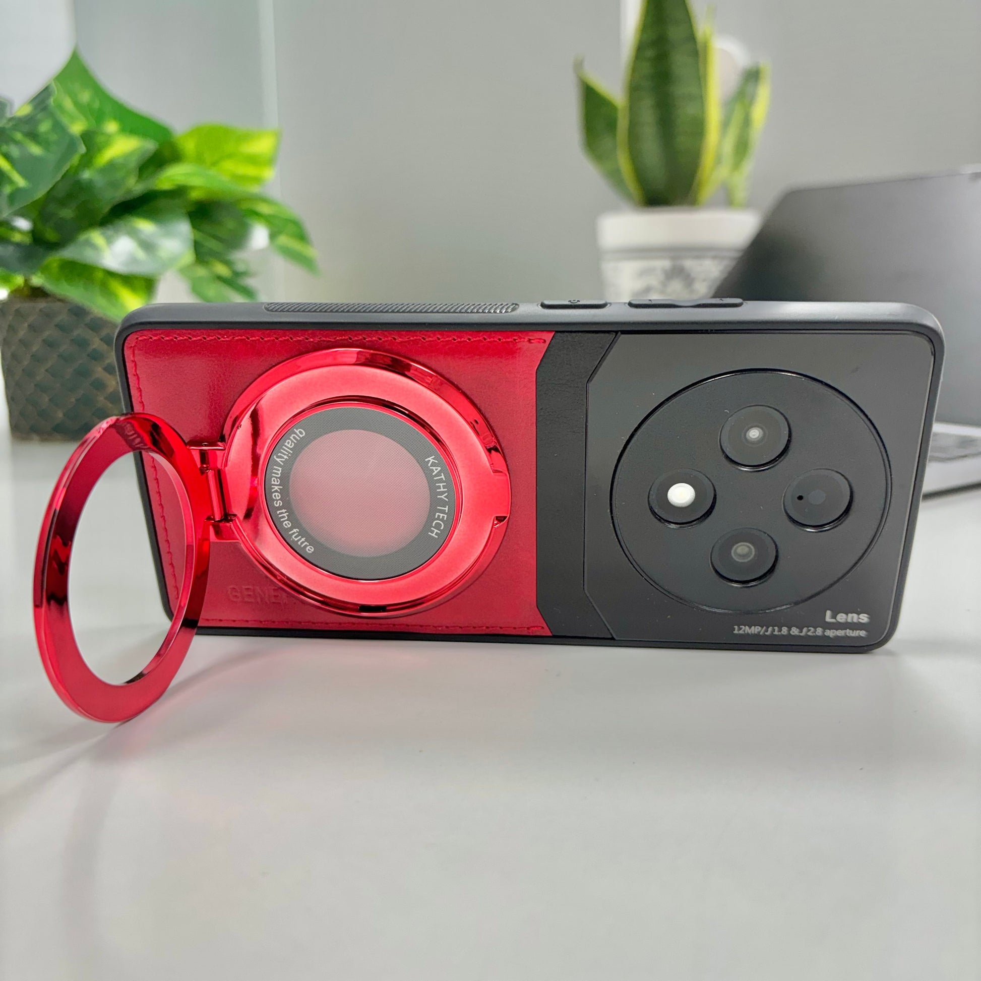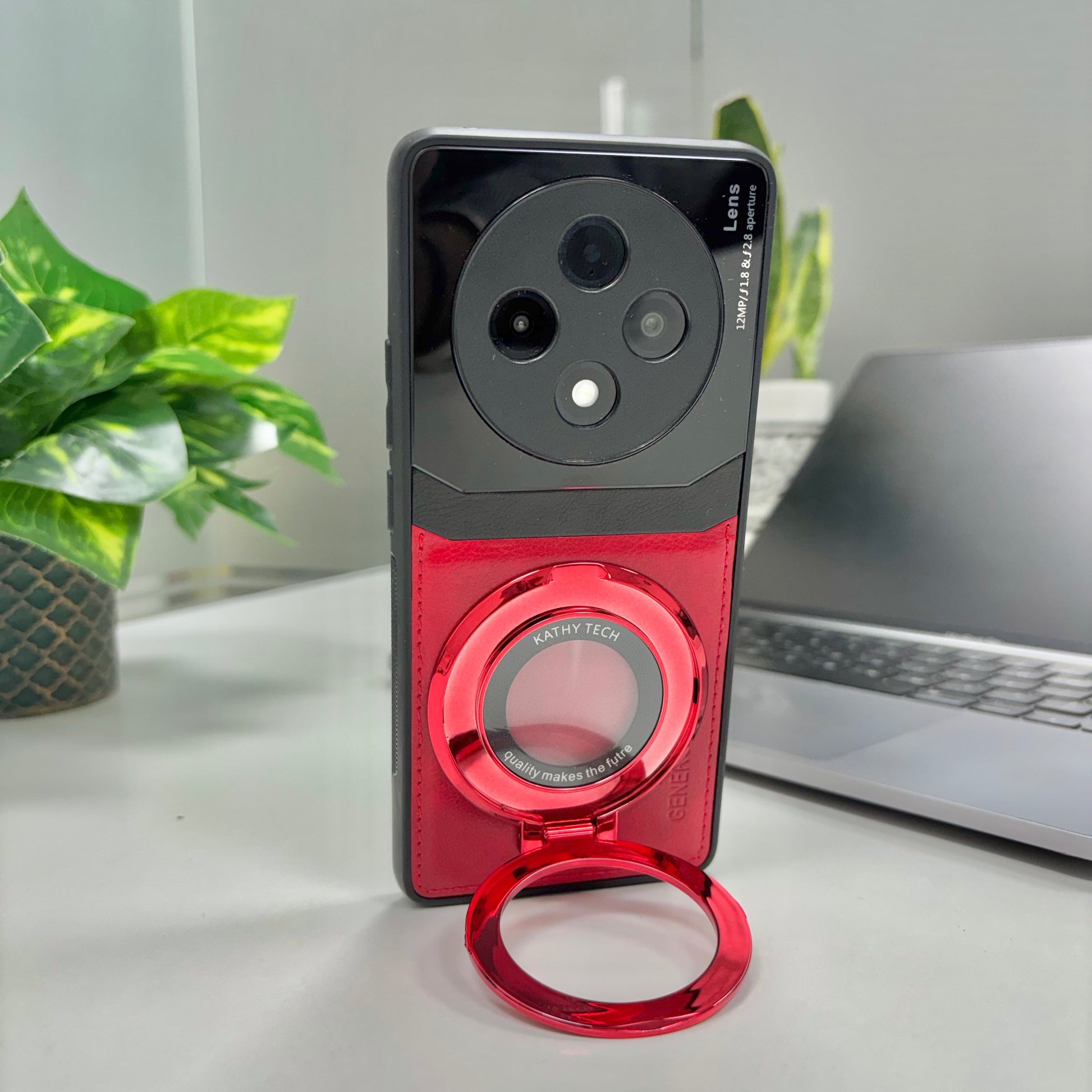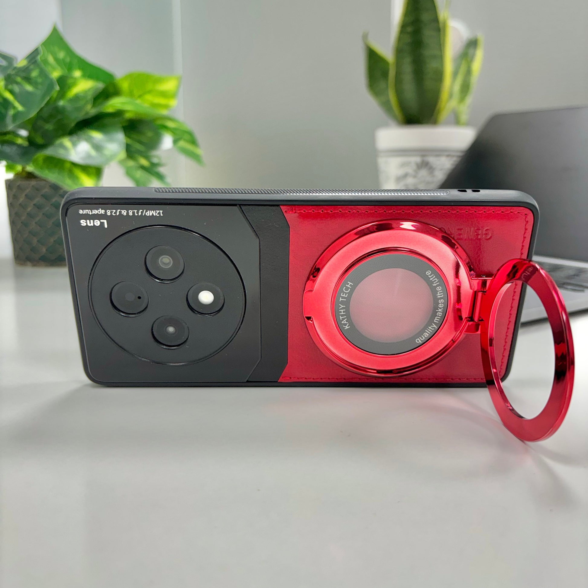 Oppo F27 Pro+ 5G Original Luxury Leather Lens Magnifier Ring Stand Case