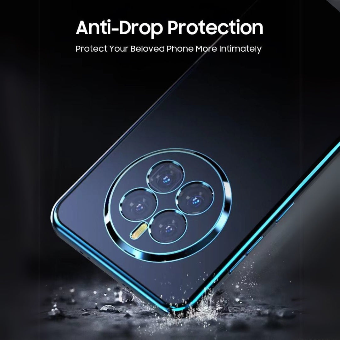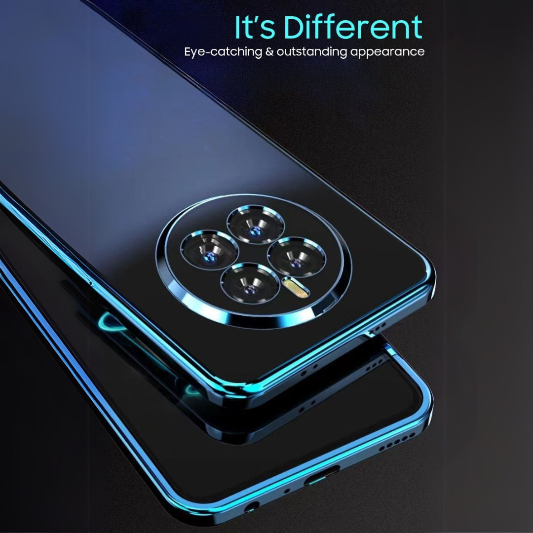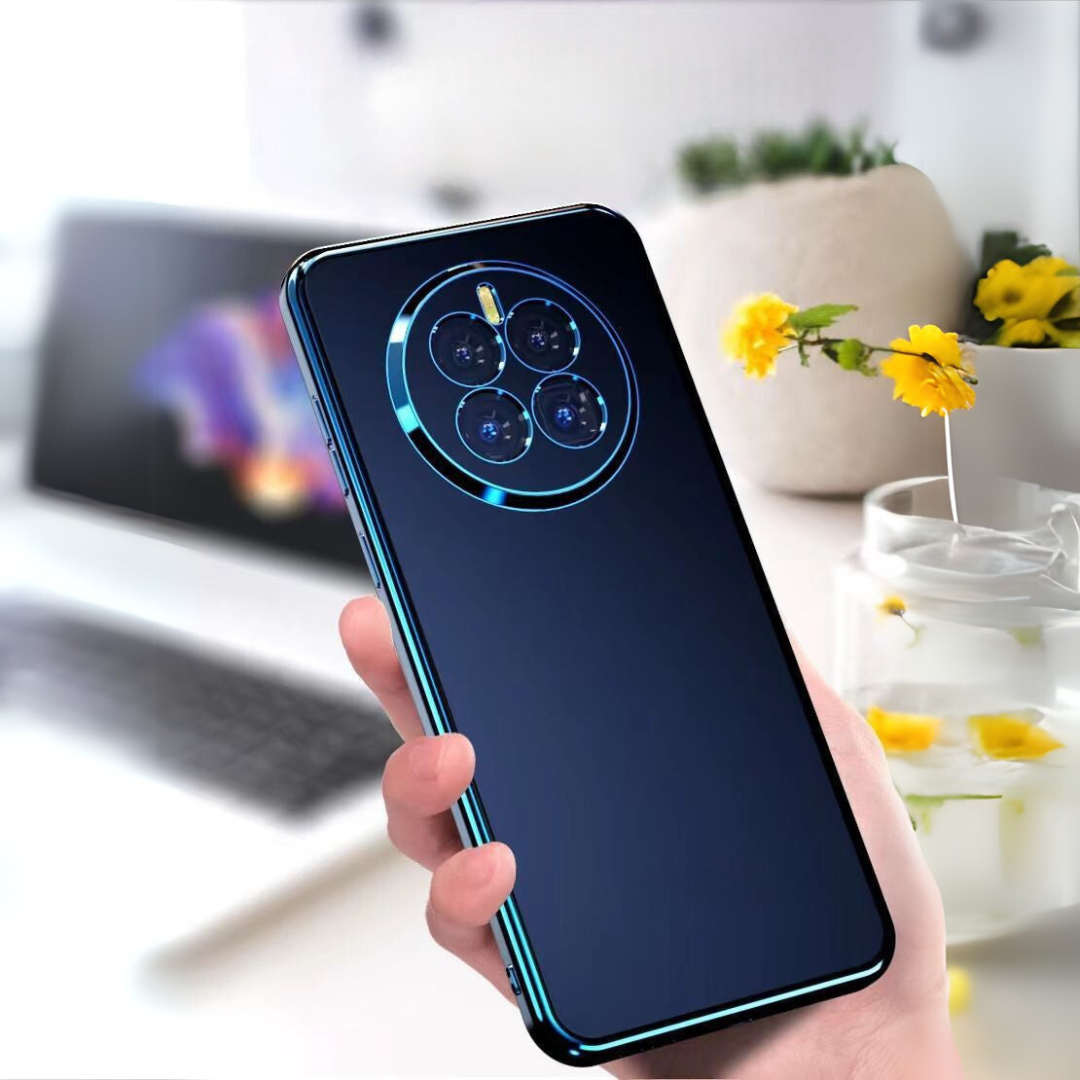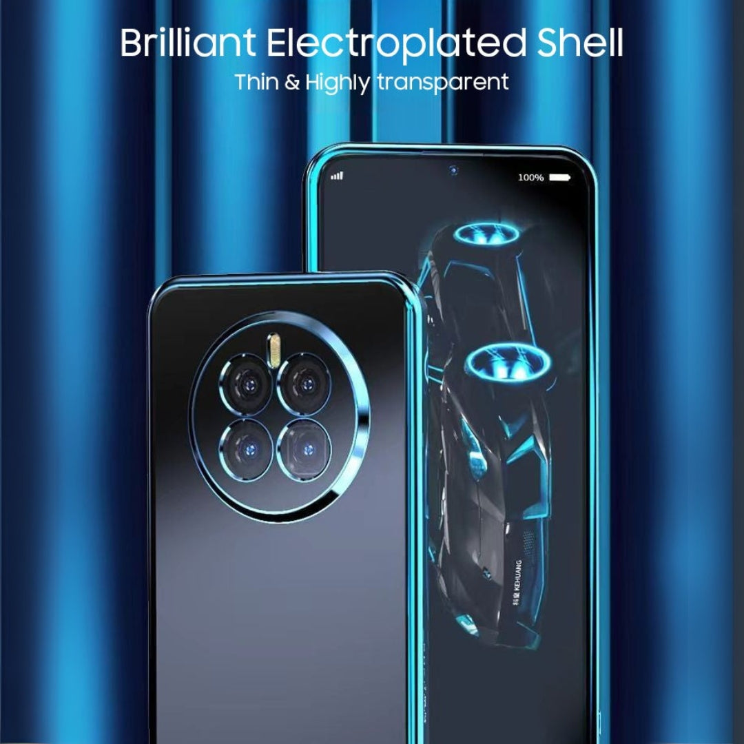 This luxury smartphone case features a sleek and transparent electroplated design with a glossy blue outline that enhances the overall aesthetics of the phone. The back showcases a unique matte pattern, offering a premium tactile feel that is both stunning and elegant. Designed with precision, the case provides an exact fit, ensuring no sliding or misalignment.