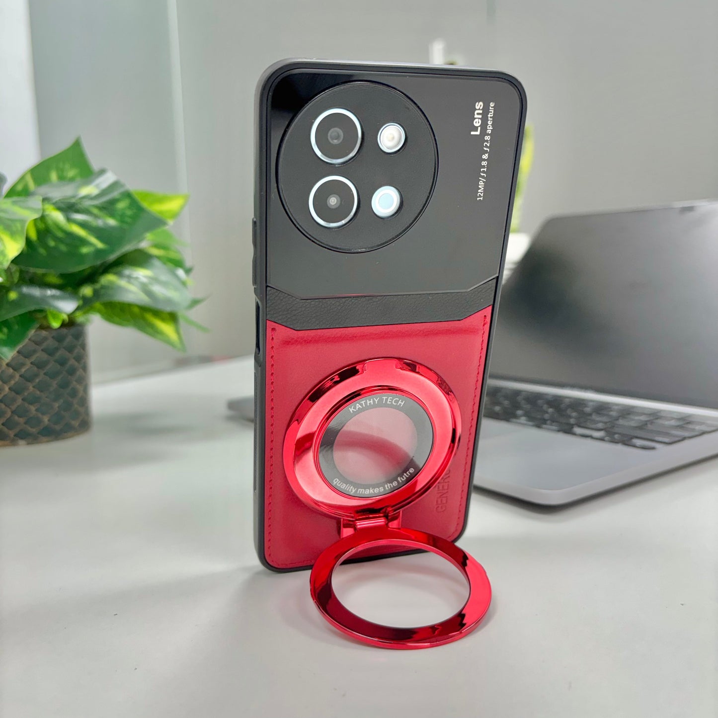 Vivo Y58 5G Original Luxury Leather Lens Magnifier Ring Stand Case